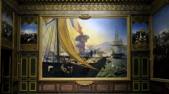 The Napoleonic collections are now displayed in several spaces in the Palace: in the Coronation Room, which showcases Napoleon’s accession to the Empire; in the “Revolution, Consulate and Empire” Rooms on the ground floor of the South Wing, which present some of the most significant moments of his accession and reign in the political, military and diplomatic spheres; and in the Gallery of Great Battles. The Chimay and South Attics house other works depicting the Napoleonic story, supplemented by a number of portraits of the Emperor’s entourage and the society of his day.