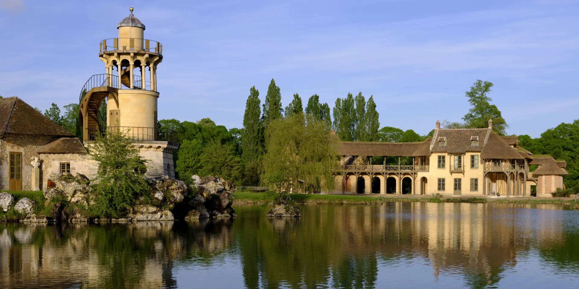 Richard Mique divided the hamlet into three distinct spaces. The first, to the south of the stone bridge which spans the stream, contains the reception facilities: the windmill (whose wheel is purely decorative), the boudoir, the Queen’s House, the billiard room and the stove room. These are cottages whose rustic exteriors concealed interiors which were carefully-decorated and often richly furnished, where the queen could host small parties of guests invited to join her on the Trianon estate. On the other side of the bridge stand the structures actually used for agricultural purposes: the barn, the working dairy, the model dairy, the fisherman’s cottage and the guard house. The tower overlooking the lake was named the ‘Marlborough Tower’, in reference to a popular song of the day. Further down the bank stands the farm, which was a going concern until the onset of the Revolution, complete with stables, pig sty, sheep pen and hen house. Contrary to the deeply-entrenched public image of Marie-Antoinette, the queen and her entourage did not “play at being farmers” amidst these bucolic surroundings, complete with sheep trussed up in ribbons. The queen actually used the hamlet as a place for relaxing walks, or to host small gatherings. The fact that the hamlet was also a functioning farm, a point upon which the queen insisted, meant that it served an educational role for the royal children.