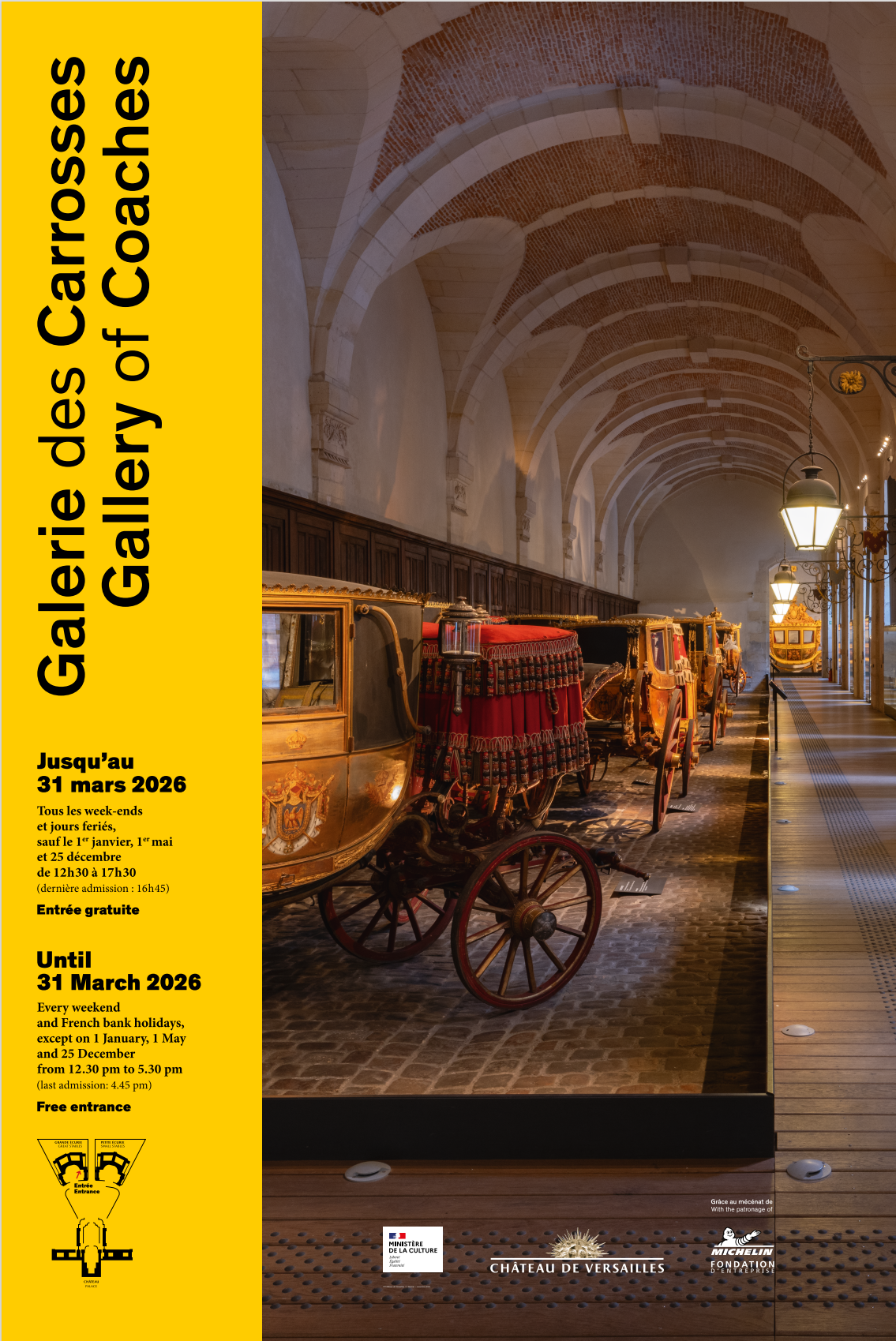 The Gallery of Coaches is open every weekends and French bank holidays (except 1 January and 25 December) from 12:30pm to 5:30pm (last entrance at 4:45pm).