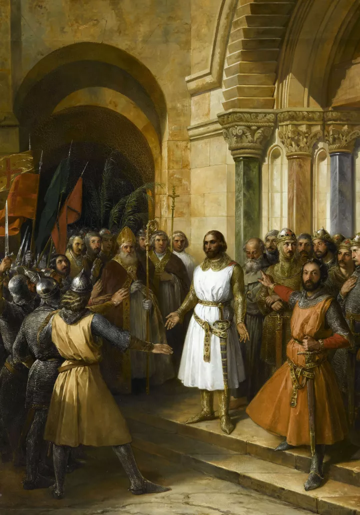 This project was above all Louis-Philippe's tribute to the Legitimist, “immemorial” nobility, who shunned his regime and whose support he tirelessly sought. This old Nobility of the Sword was the soul of the Crusades, going to liberate Christ’s tomb in Jerusalem from the end of the 11th century to the end of the 13th century, and thereafter ensuring pilgrim routes were safe. The depiction of the crusades appeared quite early in the king's Versailles project, but the room was only created following Sultan Mahmud II's donation of the Rhodes Door in 1836.