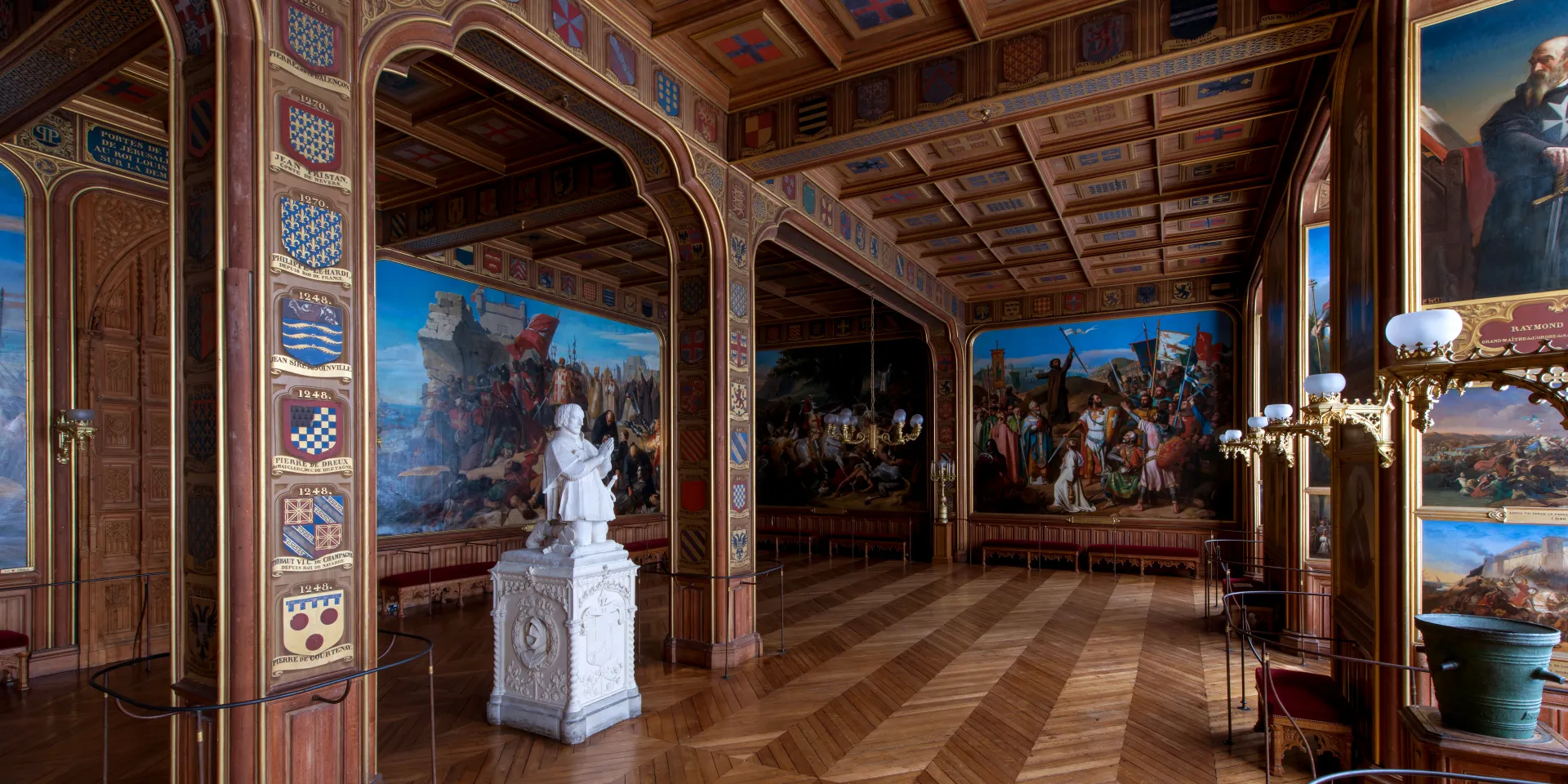Today, the decor in the Crusades Rooms is one of the oldest and most complete French Neo-Gothic collections still intact.