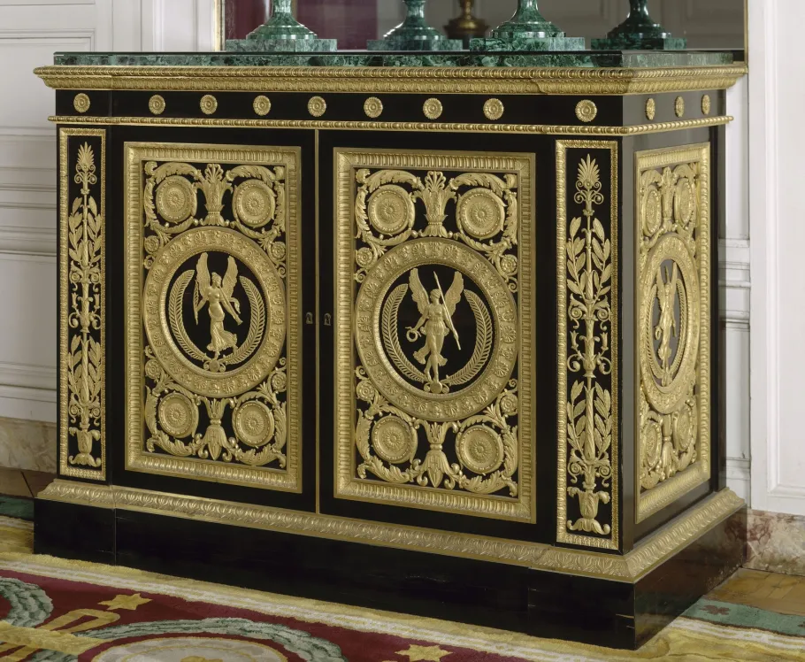 Working in collaboration with the architects Percier and Fontaine, and the painter David, he made the furniture for the National Convention and the seats for the Committee of Public Safety, before working on the décor of the Château of Malmaison for the Bonaparte family and many other fashionable homes, such as that of Madame Récamier.