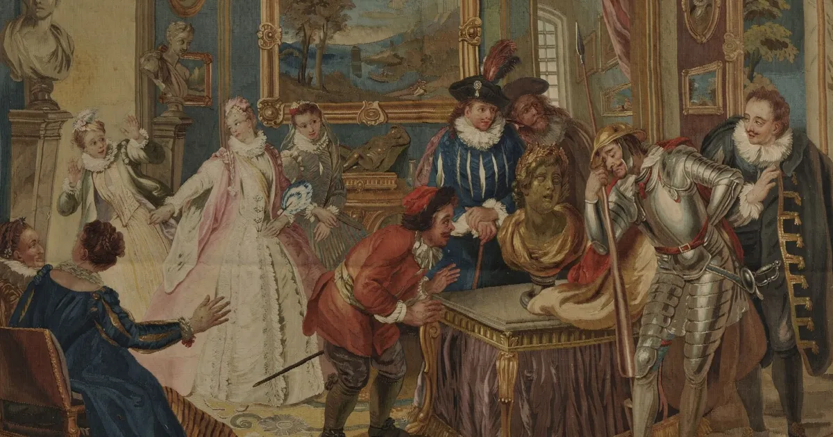 Spanish literature was hugely popular in France, widely translated and emulated by French authors. Cervantes’ works were translated into French during his lifetime, with immediate and lasting success. Cervantes is present in all of the royal libraries, and Don Quixote provided the subject matter for one of the finest series of tapestries produced at the Gobelins royal manufactory in the 18th century.