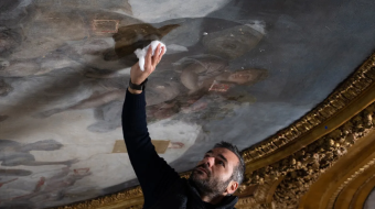 The restoration of the ceiling of the Diana room, started in October 2024 is almost finished, revealing the restored splendor of its painted vault and stucco. Discover the behind-the-scenes look at the prodigious work of the painting restorers.
