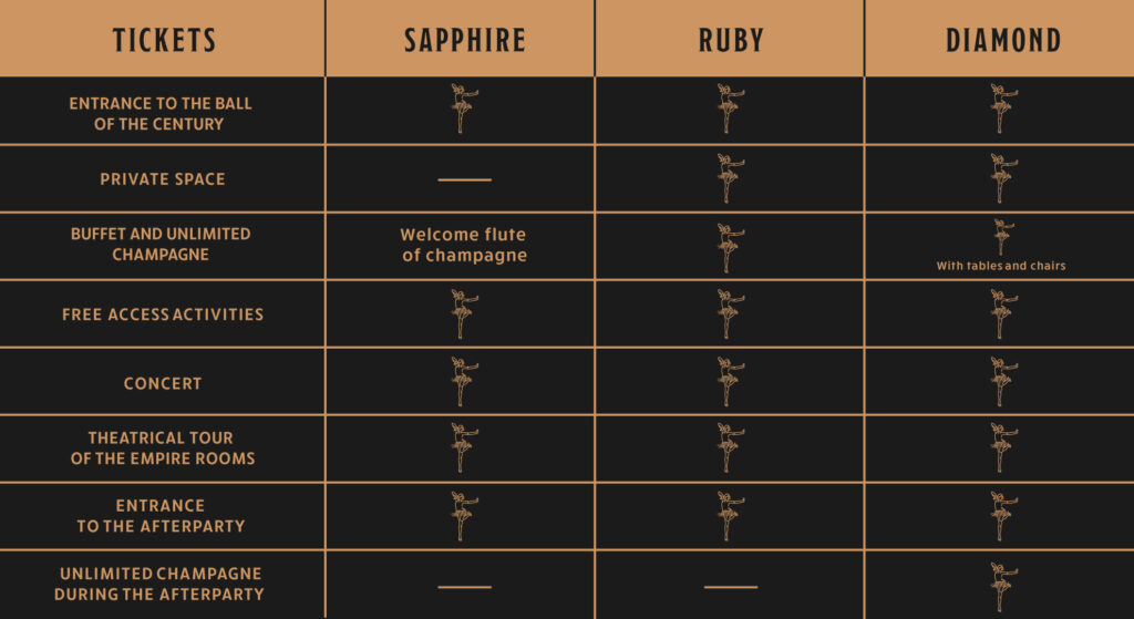 - You will potentially be filmed or photographed during this event. Château de Versailles Spectacles consider you abandon every appeal in case of use of those pictures for promotion of The Bal of the Century.