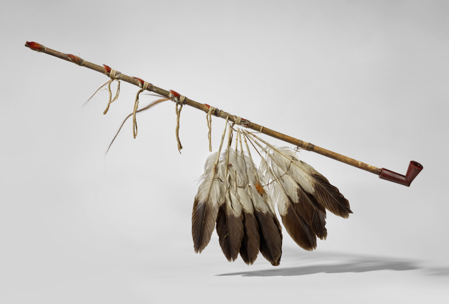 The establishment of the colony of Louisiana cemented the relationship between the French and their Indigenous allies. A cultural dialogue developed, giving rise to hybrid objects with both European and Native American elements: tomahawks decorated with fleurs de lys, necklaces made from imported beads, European knives in Indigenous sheaths. Richly-decorated peace pipes became symbols of this joint diplomacy.
