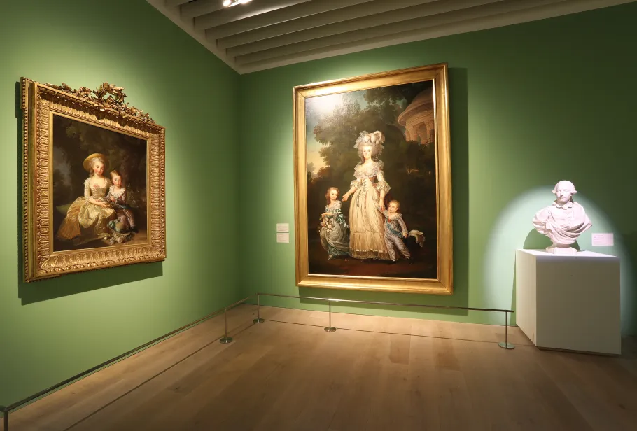 Portraits of the queen and members of the royal family by the greatest portrait artists of the Court – notably including François-Hubert Drouais, Louis Michel Vanloo and Joseph Siffred Duplessis – will allow visitors to become familiar with the circle in which Marie-Antoinette lived in France, such as King Louis XV and the Counts of Provence and Artois. Official and more personal portraits, including the one of her Children of France, by Élisabeth-Louise Vigée-Lebrun, will be exhibited. Aided by the royal administration of the Crown Furniture Store-House, Marie-Antoinette assembled around herself the most talented craftsmen to create furniture and precious objects, such as the woodworker Jean Henri Riesener, cabinet-makers such as Georges Jacob and bronze workers like Pierre-Philippe Thomire, several of whose creations are exhibited. Last but not least, sculpted busts and pieces from the royal porcelain factory in Sèvres will complete the collection.