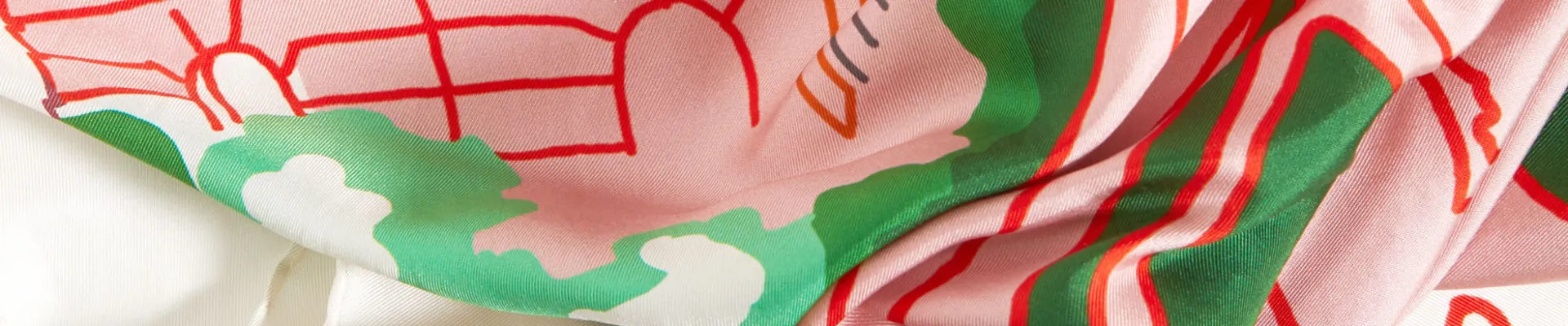 The 130x130 silk square can be worn as you choose: around the neck, around the waist, as a lavallière, bustier or dress, tied around the head or in any other way that comes to mind. Bring out the Marie-Antoinette in you!