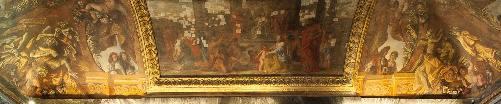The works, which began in early May 2015, aim to restore the magnificent polychrome marble panelling to its former glory, it being one of the largest ceremonial decorative installations dating from Louis XIV and still preserved in the Palace. They will also restore harmony and readability to Coypel's paintings, which are currently in poor condition due to mouldy varnish and multiple re-paints. Work on the stucco, lead and gilded wood decoration will complete the restoration of the ceiling.