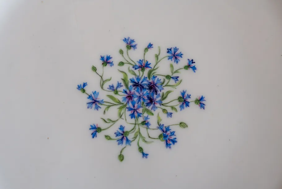 “Barbeau” is the old French term for the cornflower, featured on the porcelain service.