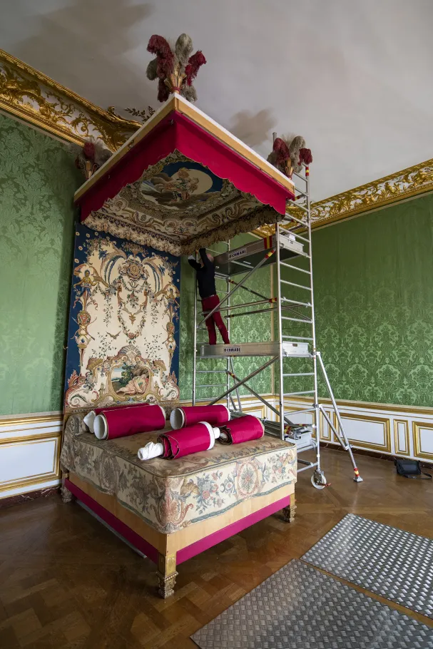 Work is underway to restore the Dauphin’s apartment, and will go on for the next year. It follows on from the work carried out in 2019 on the Queen’s State Apartments and the Dauphine’s apartment. The aim is to restore the spaces to how they were following their refurbishment in 1750 by Ange-Jacques Gabriel for Louis XV’s eldest son, the Dauphin Louis-Ferdinand.
