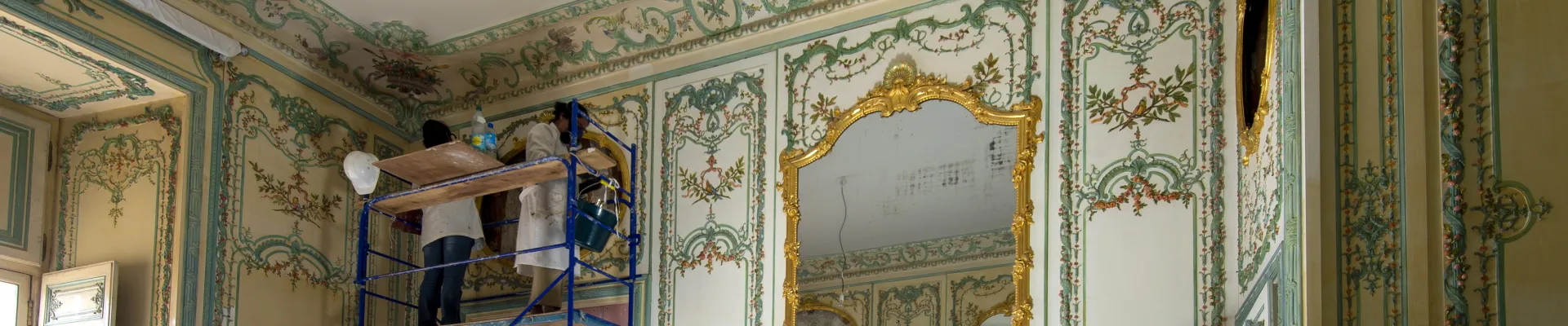 In June 2021, restoration work started on the Dauphine’s Private Chamber, formerly the residence of Maria Josepha of Saxony, wife of Louis of France and mother of Louis XVI, to restore it to its former colours. To this end, painter and decorator Gilles Dupuis has embarked on this project as a skills-based patronage operation. He has been working at the Palace alongside his father since 1957, set up his own workshop, and now works with his children.