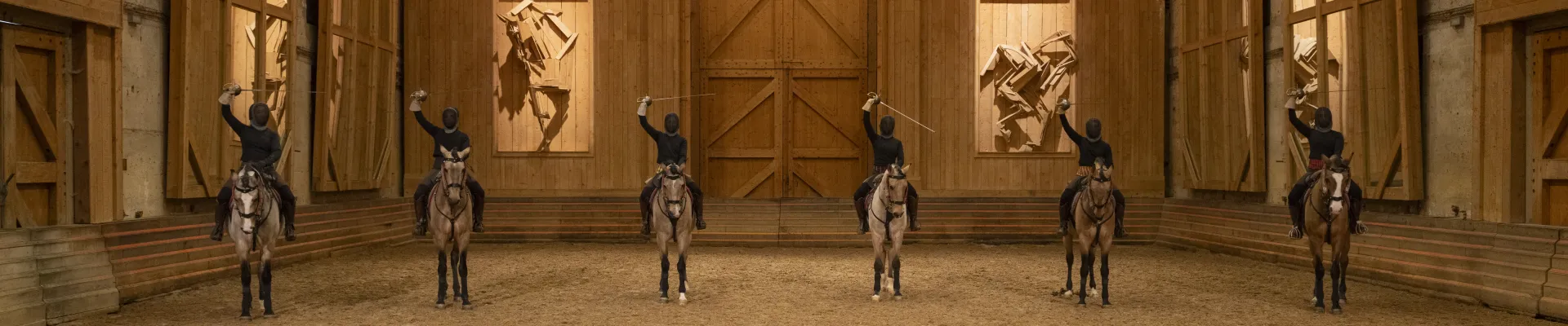 Based on the transmission of knowledge, the show sees the new class of equestrians evolve on new choreographies and revisit the emblematic tableaux of the Academy, such as the fencing on horseback, the ballet of sorayas with long reins, or the singing carousel.