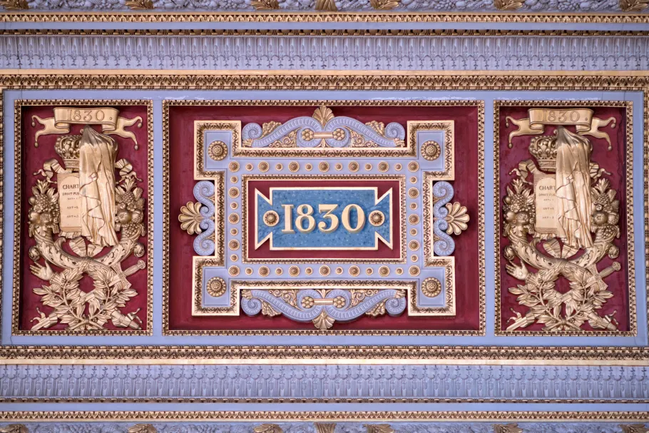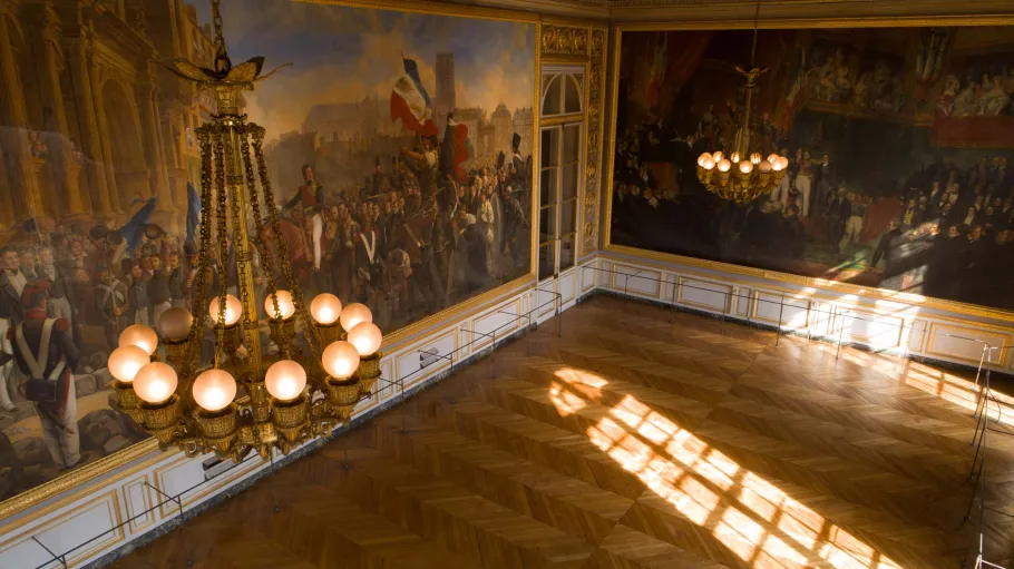 The paintings displayed in the 1830 Room are dedicated to Louis-Philippe and the events that brought him to the throne. Located on the first floor of the South Wing, this room with its gold-embellished decor offers views over the gardens.