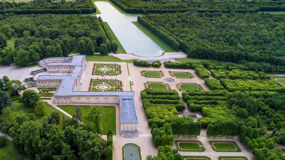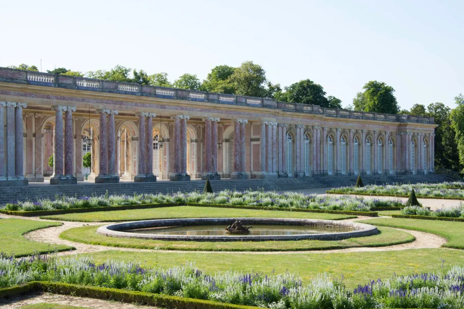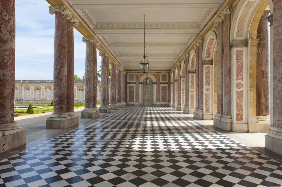 Designed by Jules Hardouin-Mansart during the reign of Louis XIV, the Peristyle of the Grand Trianon is open at both the east and west ends, offering a sense of transparency and continuity between the courtyard and the gardens.