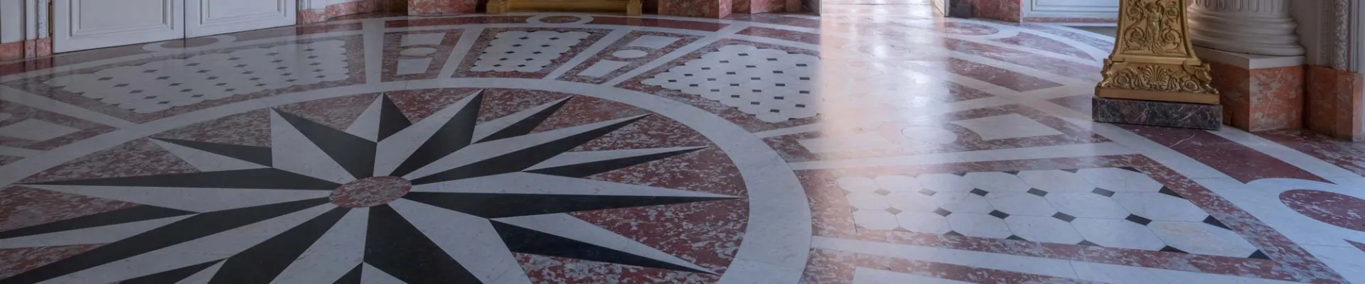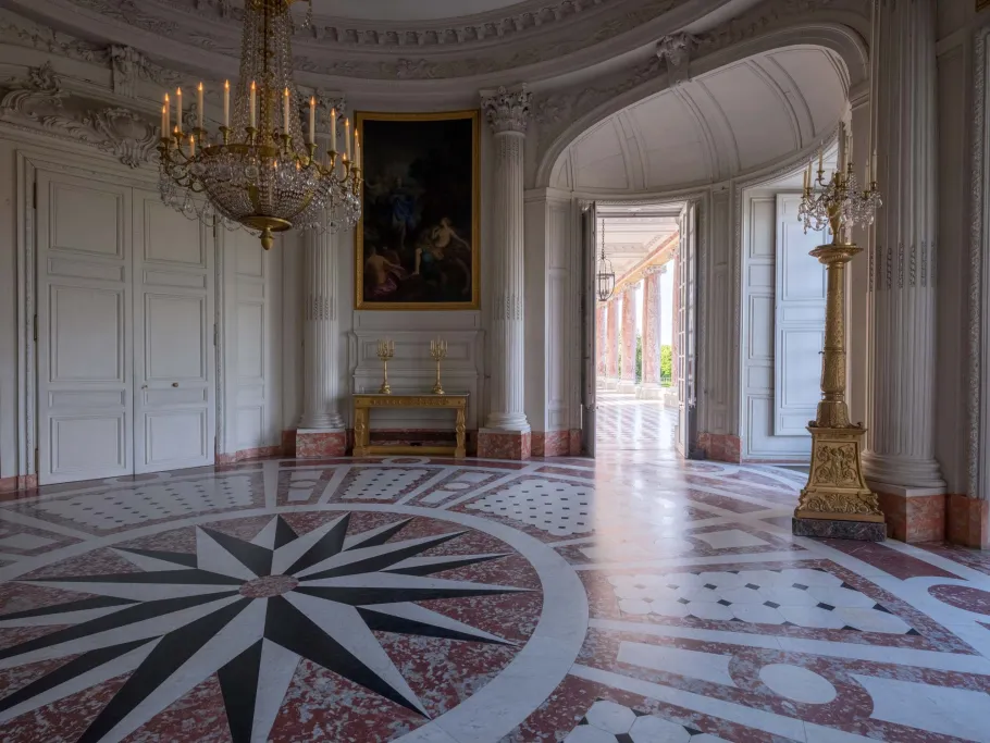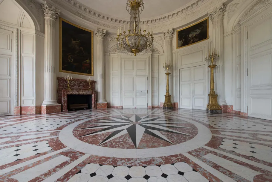 Circular in shape, the Round Room is furnished with white wood panelling punctuated with Corinthian columns. It houses two still lifes and paintings of Juno and Tethys and Boreas Abducting Orithyia. The Round Room, like the rest of the Grand Trianon, underwent restoration by André Malraux for Charles de Gaulle.