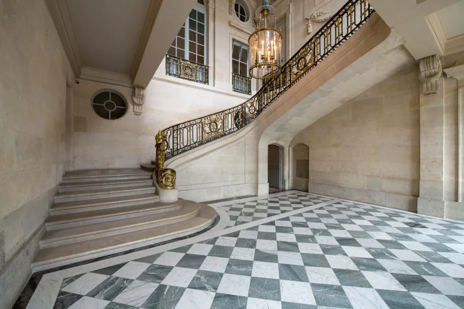 Situated on the ground floor of the Petit Trianon, the Warming Room was designed by Ange-Jacques Gabriel during the reign of Louis XV. The space houses an original fireplace and adjoins the moving mirrors mechanism room and the silverware room.