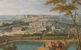 Cette vue cavalière du château et des jardins de Versailles, de Pierre Patel, s’inscrit dans la commande des vues des maisons…